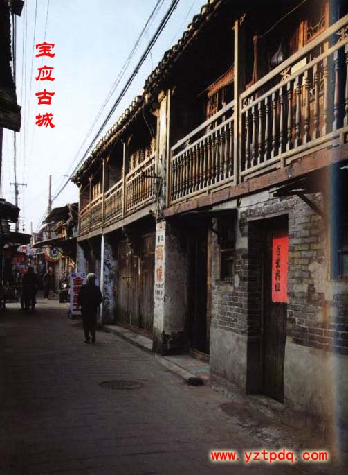 《寶應歷代縣志類編》載。寶應老街有:縣前大街、學前大街、迎秀大街、南北大街、東西大街、東門大街、城隍大街、東岳廟街、痘神廟街、魚頭街,以及大石頭街、西街等近20條街道。古巷有:堂子巷、姜家巷、東三元巷、西三元巷、朱家巷、李府巷、官巷、發財巷、古董巷、蔡家巷、不見天井巷、喬家巷、東槐樹巷、西槐樹巷、核桃樹巷、一人巷、一寸巷等數十條,以及鐵橋口、牌樓口、磨子口、井巷口、魚市口、羅巷口等介于街和巷之間的行人出入通道。老街上貨分南北品種不同的店鋪商號一字排開對面相望,古巷門堂有別、楹聯各異的人家宅院、墻體相連、互為依托。更有眾多的名勝古跡星羅棋布,名人故居散落其間。早、可以追溯到漢魏隋唐,遲,也要頂到晚清民國。這些前人留下的設施,不但具有厚重的歷史底蘊,也顯示豐富的文化內涵。