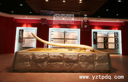 走進寶應博物館,一進一樓大廳,就能看見一根象牙,長420厘米,最大直徑22.2厘米,淺白色,月牙狀彎曲,表面平滑,為國內出土同類化石之最,堪稱“中華第一牙”。這根象牙是2003年9月在寶應夏集鎮境內出土的,是一個古菱齒象牙化石,古菱齒象比猛犸象要大20萬歲,體型比猛犸象還要大,是當時地球上顯赫一時的“大象家族”。