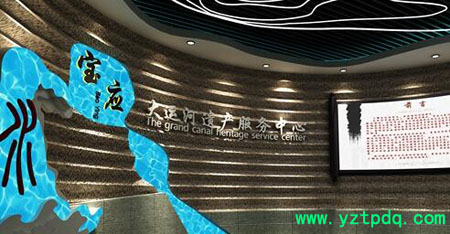 展示中心整體布局上,層層遞進。以時間為脈絡,循序大運河“水起射陽春秋)——水潤平安(漢魏晉南北朝)——水興安宜(隋唐時期)——水盛寶邑(宋元時期)——水載寶地(明清時期)——水韻之春(現代部分)”逐層深入展示大運河的文化及發展,生動演繹大運河的發展,系統介紹運河發展史以及對寶應發展的影響,重現了運河變遷時期寶應及其他沿岸地區重要歷史文化面貌和文化內涵,進一步弘揚運河文化。