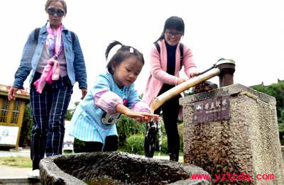 揚(yáng)州東關(guān)街“手壓井”小景點(diǎn)成為小游客寓教于樂的“活教材”,引導(dǎo)孩子們從小養(yǎng)成良好的衛(wèi)生習(xí)慣。配圖為小游客在家長(zhǎng)的陪同下體驗(yàn)“手壓井”洗手帶來的樂趣。