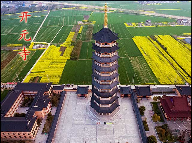開元寺 座落于揚州市江都區(qū)大橋鎮(zhèn),因建于唐玄宗開元年間故得名。寺名由大書法家李邕題寫。寺由山門、大雄寶殿、觀音閣、南樓等組成,高大宏偉、凝重端莊。大詩人劉長卿、盧綸、羅隱等曾登臨賦詩抒懷:“過雨開樓看晚虹,白云相逐水相通”(盧綸);“空堂來霜氣,永夜清明燈”(劉長卿);“江蹙海門帆散去,地吞淮口樹相依”(羅隱)。這些絕妙詩句,勾勒出長江岸邊古寺的優(yōu)美景色。開元寺于清順治十八年遷移至鎮(zhèn)西三豐村,寺貌依舊。1958年寺廢圮。1994年開始,重新興建山門、三圣殿、客堂、齋堂等。主體建筑大雄寶殿,由揚州建筑設(shè)計院設(shè)計,大殿的彩繪由我國著名彩畫大師、北京故宮博物院馬田老先生主持設(shè)計。大雄寶殿為歇山復(fù)檐,翹角飛檐,高大雄偉。寺內(nèi)供奉釋迦牟尼大佛像等,佛身高大,氣魄非凡。整個大雄寶殿,構(gòu)造精良,絢麗多姿,體現(xiàn)了江都“當(dāng)代魯班”的技藝,是江都的建筑杰作。2000年大雄寶殿竣工,當(dāng)年舉行了隆重的開光儀式,國內(nèi)外名僧佳賓云集,盛況空前。佛教協(xié)會會長趙樸初贈書,茗山法師題寫寺匾,雪松法師撰寫楹聯(lián):“圣教東來金人應(yīng)夢,開元重建政策英明。”