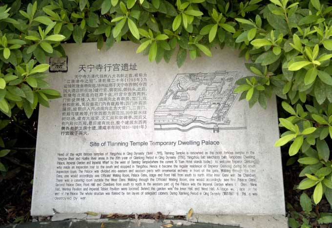 御馬頭的北面就是著名的天寧寺。乾隆第一次南巡到揚(yáng)州,駐蹕地是在南郊三汊河的高旻寺,進(jìn)城甚為不便。從第二次南巡始,就把天寧寺作為行宮,此后每一次乾隆南巡都要駐蹕天寧寺,每一次都要在天寧寺前的碼頭乘龍舟游覽瘦西湖,于是原本無(wú)名的天寧寺碼頭,從此便響了名,成了聞名遐邇的“御馬頭”。